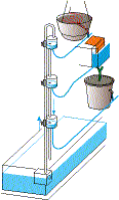 Überlauf- und Kaskaden-Niveausteuerungen dienen zur Ergänzung des verbrauchten Wassers und gleichzeitig zur Feuchtesteuerung von Kapillarbewässerungsanlagen mit Glasfaserdochten und -matten, wenn das Wasser aus tieferliegenden Behältern entnommen wird. Überlauf-Niveausteuerungen fördern das Wasser mit einer Aquariumpumpe in einen höheneinstellbaren Überlaufbehälter, der mit dem auf Niveau zu haltenden Behälter verbunden ist.
